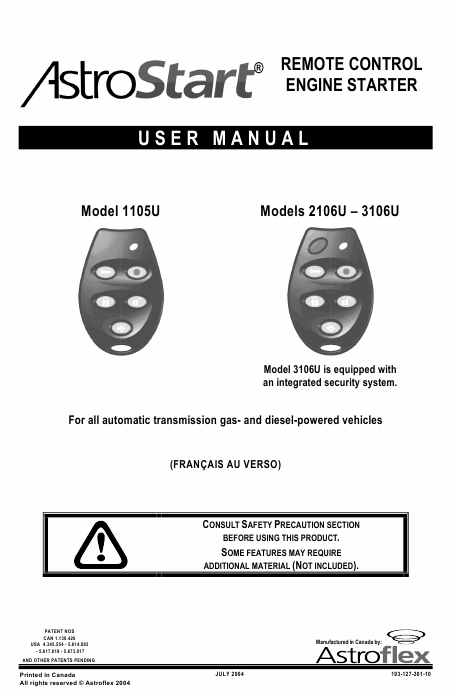 ASTROFLEX AstroStart 3105U Users Guide English
