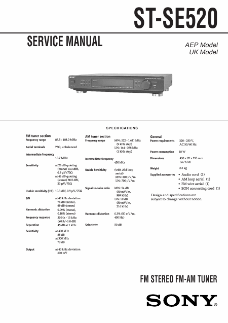 SONY ST-SE520 (STSE520) Manuel de service Anglais