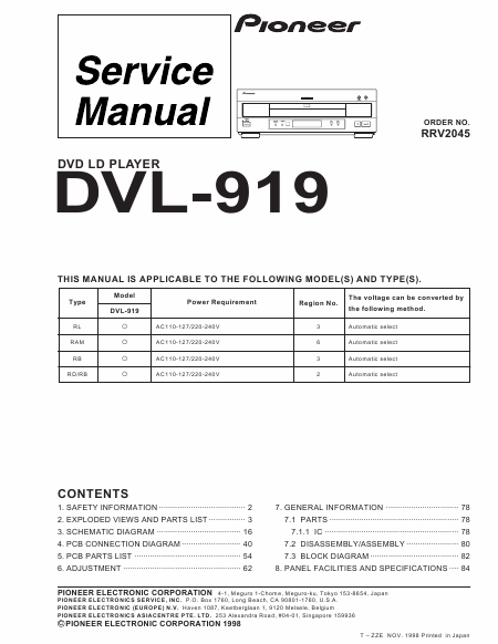 Download PIONEER DVL-919 Serviceanleitung Englisch (87 Seiten) 15.90 EUR