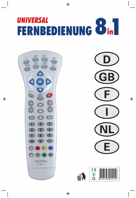 Download SUPPORT PLUS SP-URC-81-L Anleitung Deutsch (8 Seiten) 12.90 EUR