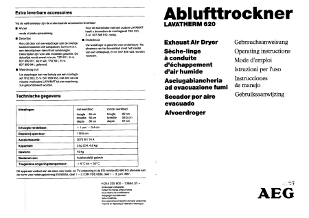Baixar AEG Lavatherm 620 (LTH620) Instruções Francês (20 Pages) 12.90 EUR