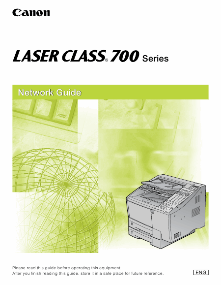 Descargar CANON LASER CLASS 700 Series (Network Guide) Guía del usuario Inglés (108 Páginas) 15.90 EUR