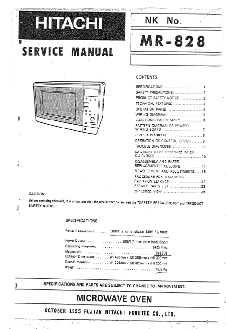 HITACHI MR-828 (MR828) Manuale di servizio Inglese