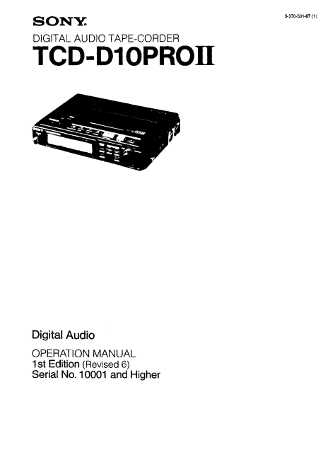 SONY TCD-D10 PRO II (TCDD10) Guía del usuario Inglés