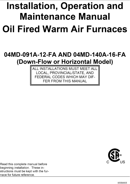 NORDYNE 04MD-140A-16-FA Manuel installation Anglais