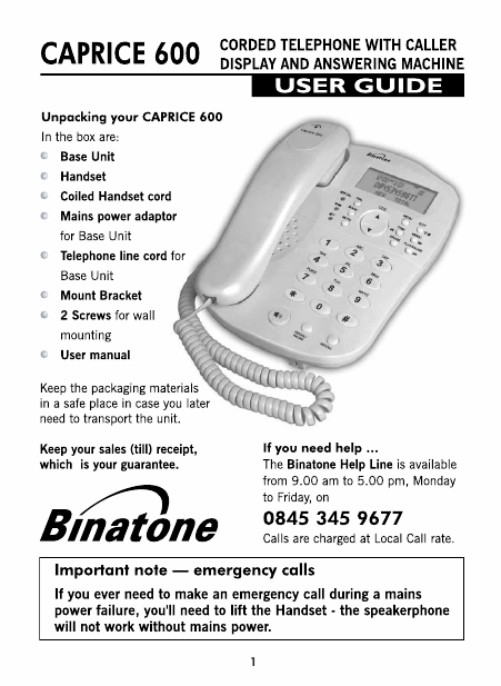 Download BINATONE Caprice 600 Anleitung Englisch (34 Seiten) 12.90 EUR