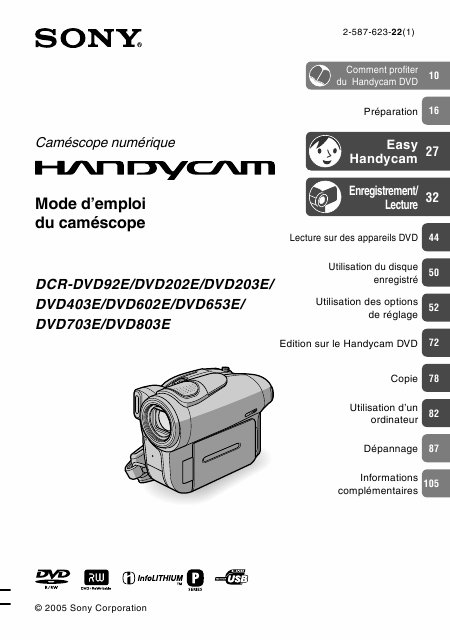 Descargar SONY Handycam DCR-DVD602E Guía del usuario Francés (120 Páginas) 12.90 EUR