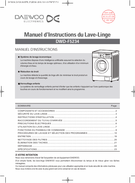 DAEWOO DWD-F5234 Anleitung Französisch