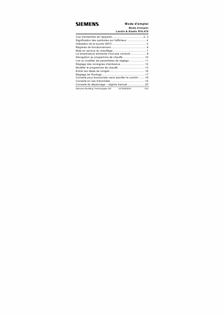 Telecharger SIEMENS RVL470 Mode emploi Français (24 Pages) 15.90 EUR