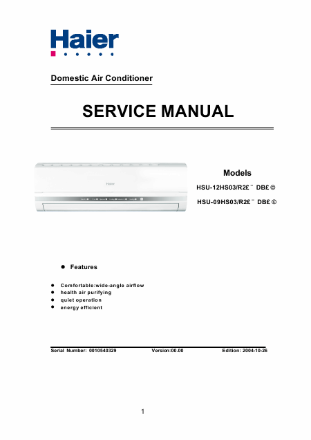 Download HAIER HSU-09HS03/R2(DB) Service Manual English (65 Pages) 15.90 EUR