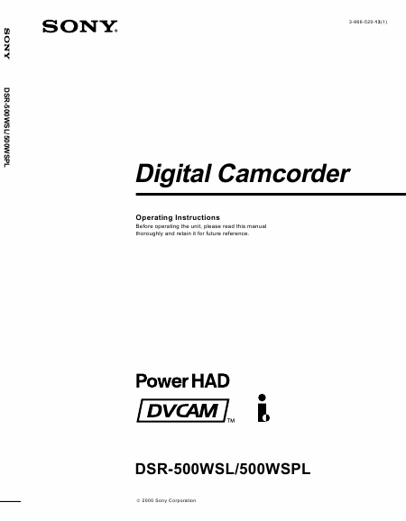 SONY DSR-500WSL DVCAM Istruzione Inglese