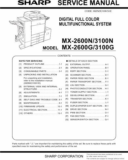 SHARP MX-2600G Manuale di servizio Inglese