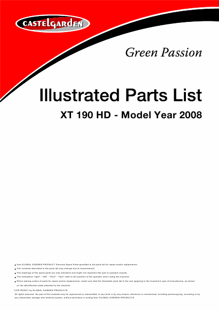CASTELGARDEN XT 190 HD (2008) Ersatzteile Englisch