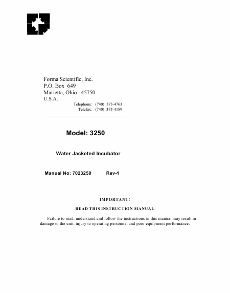 FORMA SCIENTIFIC 3250 Guía del usuario Inglés