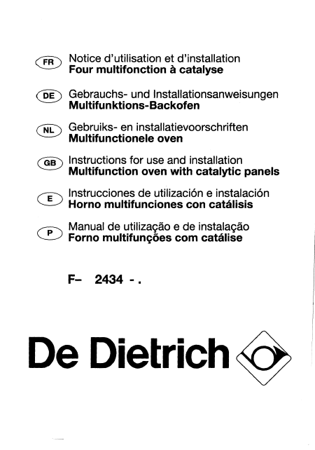 Download DE DIETRICH F* 2434* Users Guide French (12 Pages) 15.90 EUR