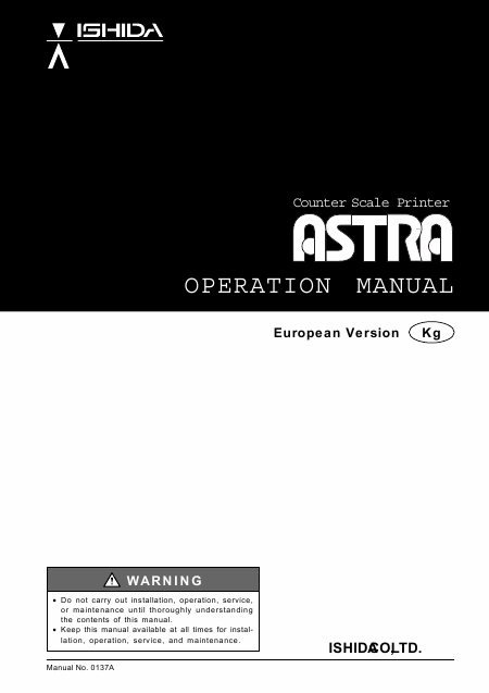 Scaricare ISHIDA Astra Istruzione Inglese (64 Pagine) 15.90 EUR