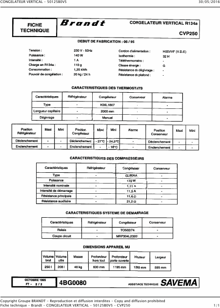 BRANDT CVP 250 Schemas Français