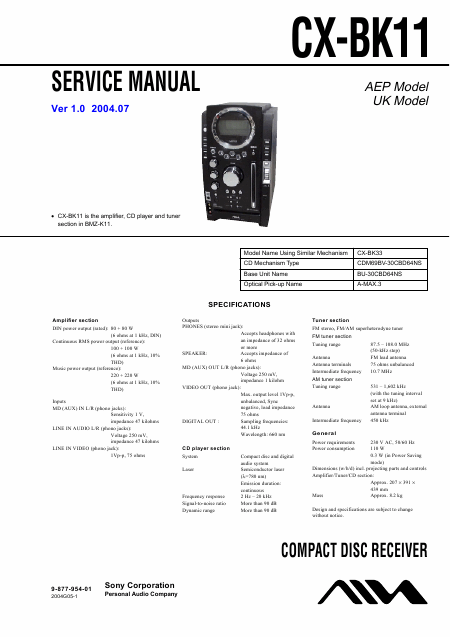 Download AIWA CX-BK11 Serviceanleitung Englisch (98 Seiten) 15.90 EUR