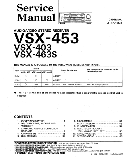 Baixar PIONEER VSX-453 (VSX453) Manual de serviço Inglês (49 Pages) 39.90 EUR