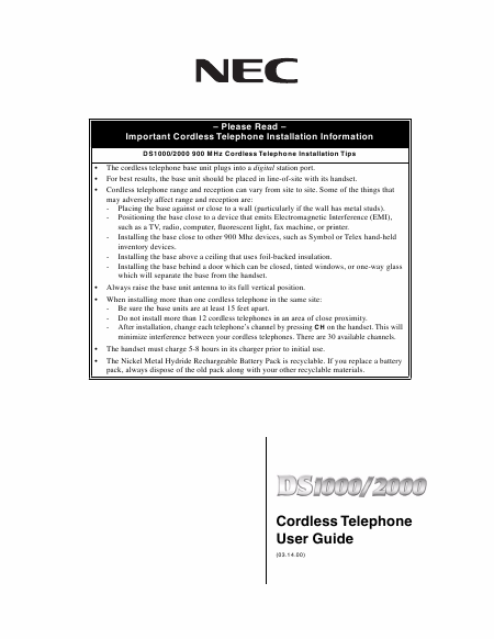 Scaricare NEC 80683 (DS1000/DS2000) Istruzione Inglese (48 Pagine) 15.90 EUR