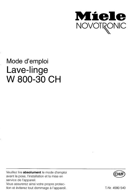 Telecharger MIELE W 800-30 CH Mode emploi Français (40 Pages) 12.90 EUR