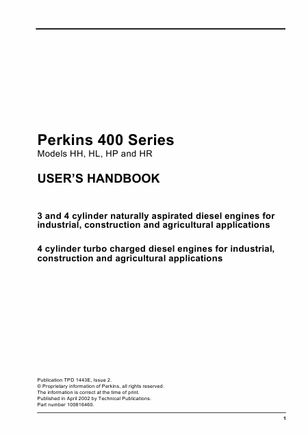 Download PERKINS 400 Series (Models HH, HL, HP, HR) Users Guide English (10 Pages) 12.90 EUR