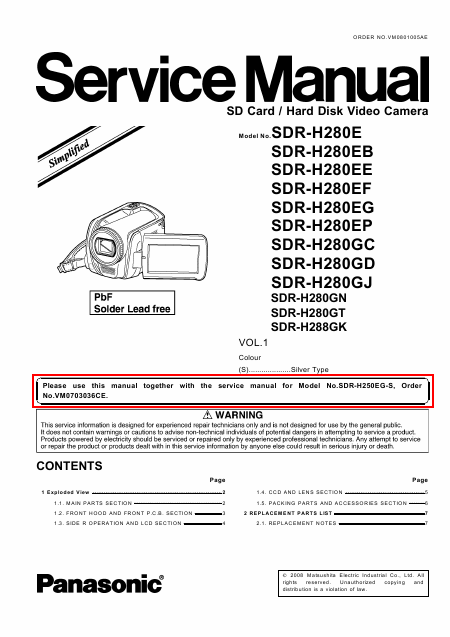PANASONIC SDR-H280 (SDRH280) Manual de serviço Inglês