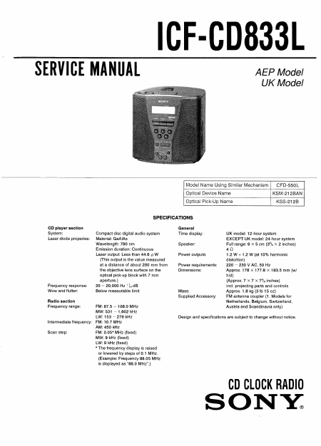 SONY ICF-CD833L Serviceanleitung Englisch