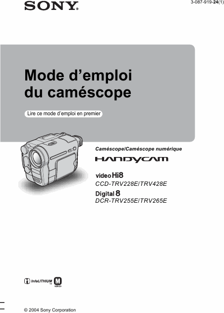Download SONY DCR-TRV255E Users Guide French (104 Pages) 15.90 EUR