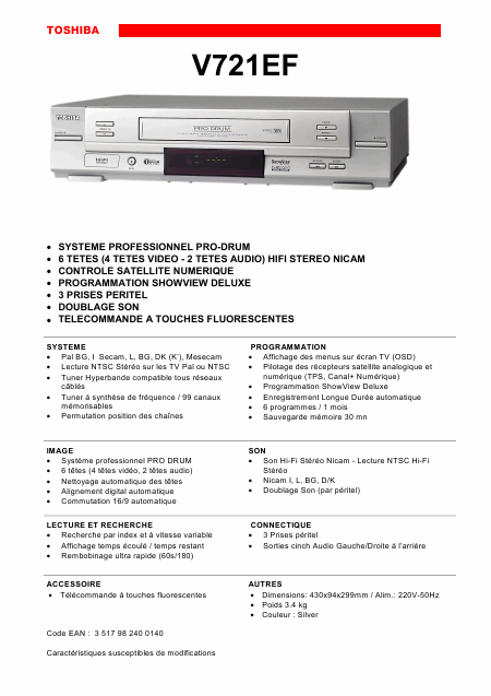 TOSHIBA V-721 (V721EF) Brochure Français