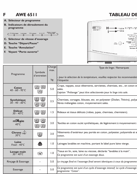 Descargar WHIRLPOOL AWE 6511 (AWE6511) Guía del usuario Francés (20 Páginas) 12.90 EUR