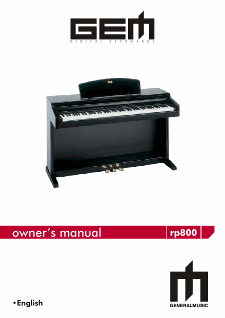Baixar GEM RealPiano RP800 Instruções Inglês (24 Pages) 15.90 EUR