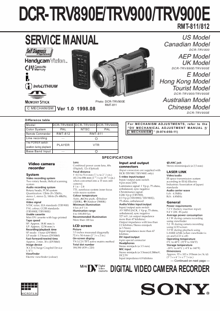SONY DCR-TRV900 / DCR-TRV900E Manuale di servizio Inglese