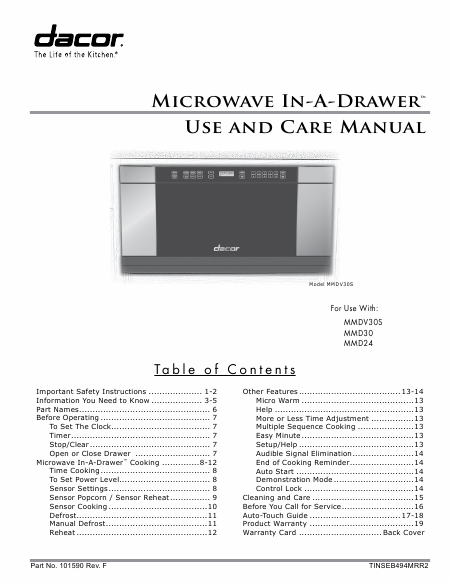 Descargar DACOR MMD30 Guía del usuario Francés (22 Páginas) 12.90 EUR
