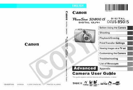 Download CANON PowerShot SD800 IS Anleitung Englisch (147 Seiten) 12.90 EUR