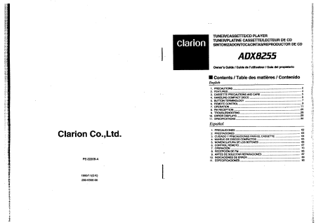 CLARION ADX 8255 (ADX8255) Istruzione Inglese