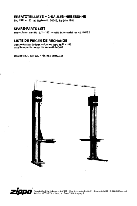 Descargar ZIPPO 1521 Lista de piezas de repuesto Inglés (8 Páginas) 39.90 EUR