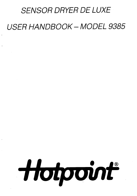HOTPOINT 9385 Sensor Dryer De Luxe Istruzione Inglese