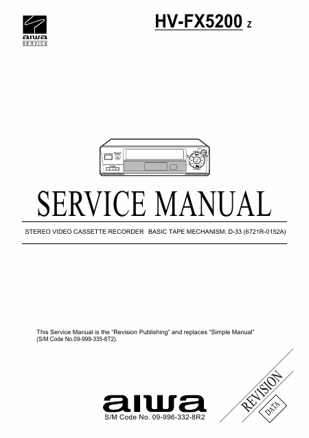 AIWA HV-FX5200Z Serviceanleitung Englisch