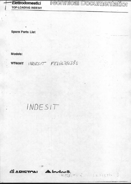 INDESIT WT 600 (WT600) Lista de piezas de repuesto Inglés