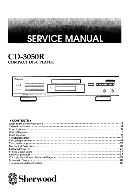 SHERWOOD CD-3050R Manual de serviço Inglês