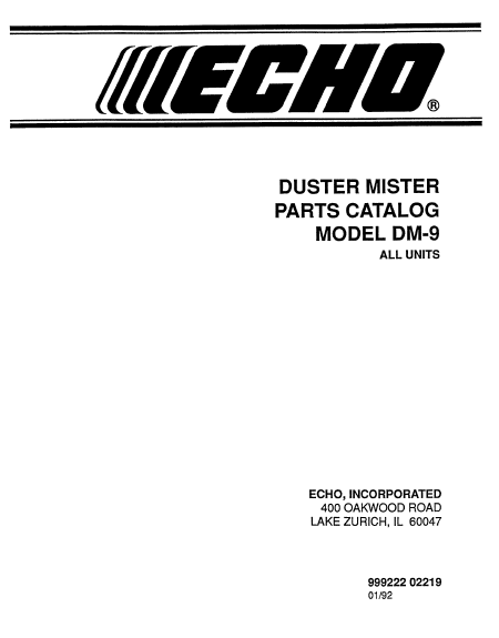 ECHO DM-9 Lista parti di ricambio Inglese