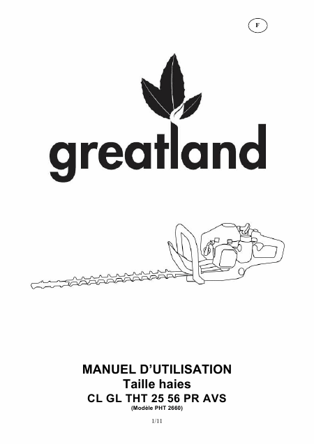 Scaricare GREATLAND PHT 2660 Istruzione Francese (11 Pagine) 15.90 EUR