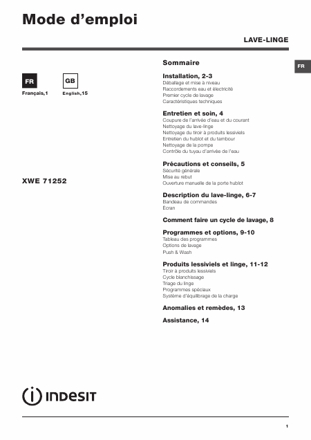Download INDESIT XWE71252 Anleitung Französisch (12 Seiten) 12.90 EUR