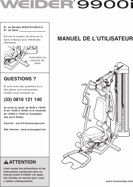 WEIDER 9900 i Istruzione Francese