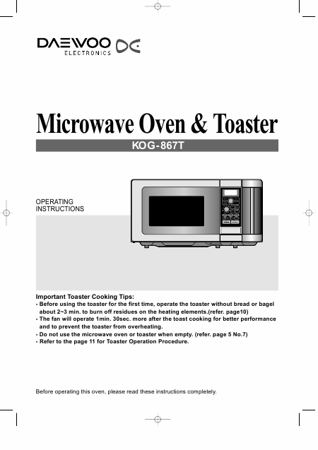 DAEWOO KOG-867T Instruções Inglês
