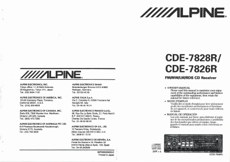 Download ALPINE CDE-7826R Anleitung Französisch (41 Seiten) 59.90 EUR