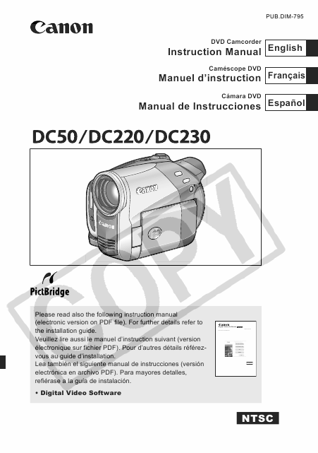 CANON DC50 (NTSC) Mode emploi Anglais