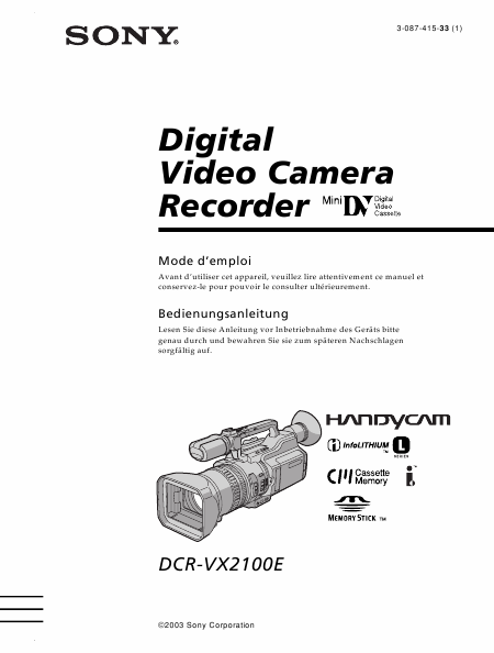 Download SONY DCR-VX2100E Handycam Anleitung Französisch (130 Seiten) 12.90 EUR