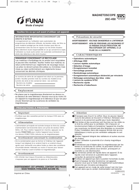 FUNAI 25C-450 Istruzione Francese